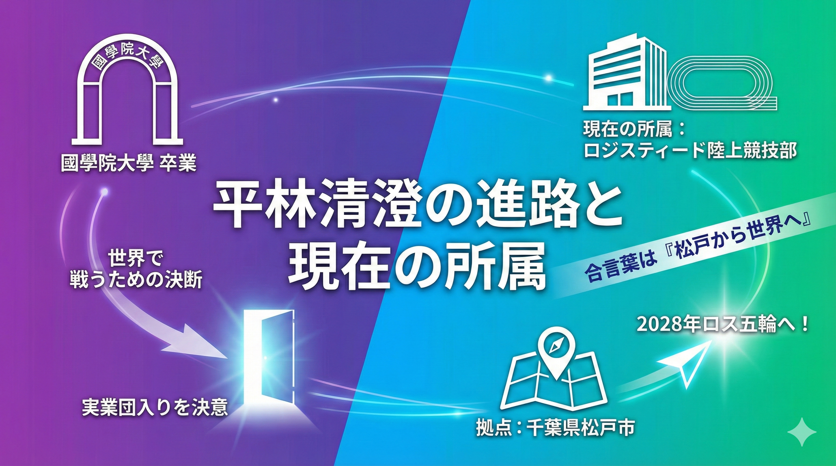 國學院大學を卒業した平林清澄選手は、2025年4月より実業団の強豪「ロジスティード陸上競技部」(旧・日立物流)に所属し、プロフェッショナルな競技者として新たなスタートを切りました。 本章では、進路決定の背景や同チームを選んだ決定的な理由、現在のトレーニング環境、そして見据える世界への挑戦について紹介します。